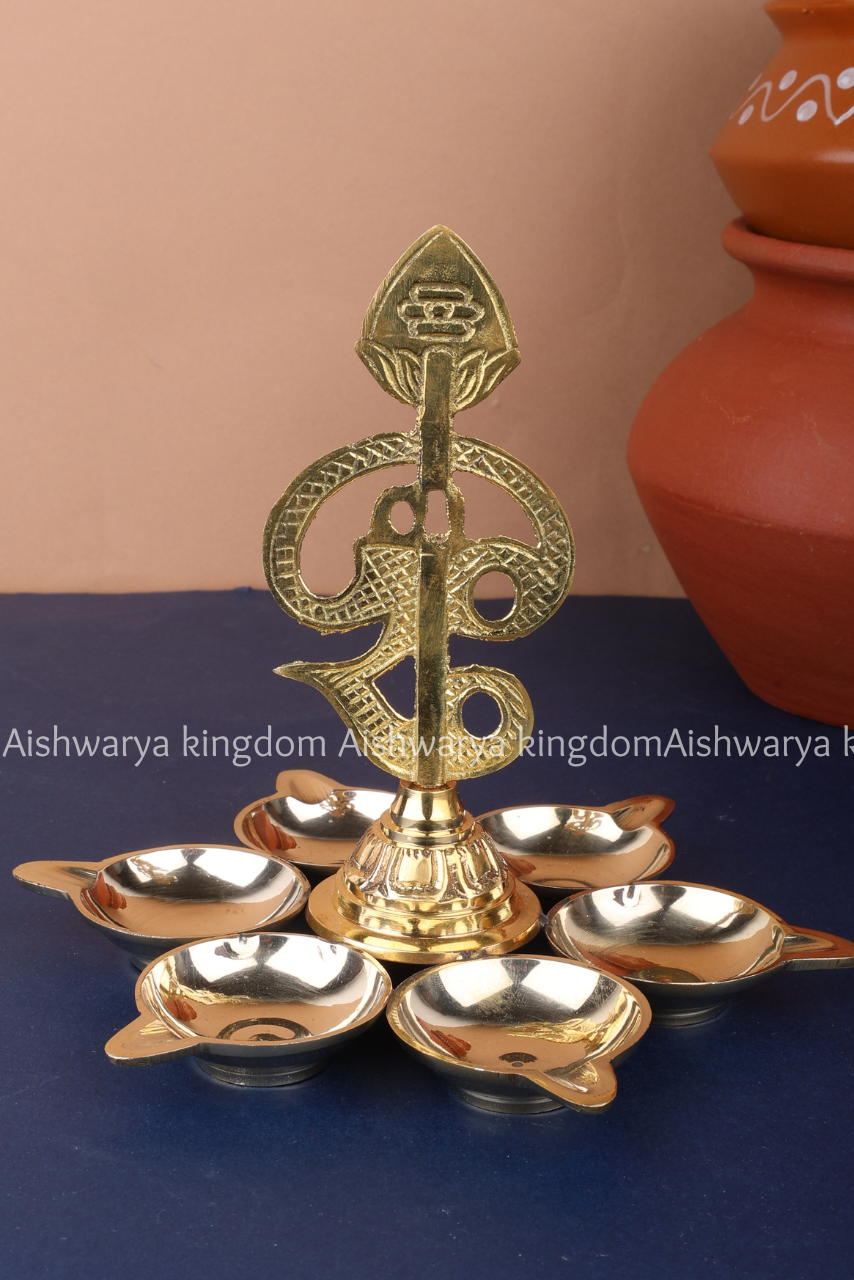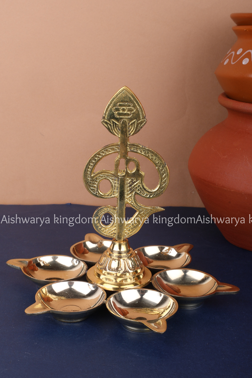 Illuminate your home with divine grace using the Aarumuga Om Vel Vilakku from AK Crafts. This sacred brass lamp is inspired by Lord Murugan, also known as Aarumuga (the six-faced deity), and features the powerful symbols of Om and Vel, representing spiritual energy, wisdom, and protection.
