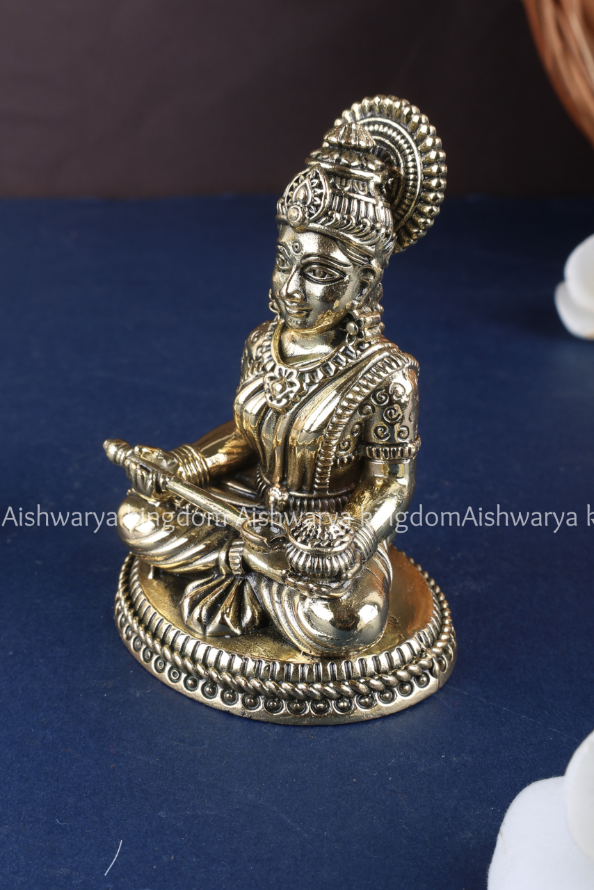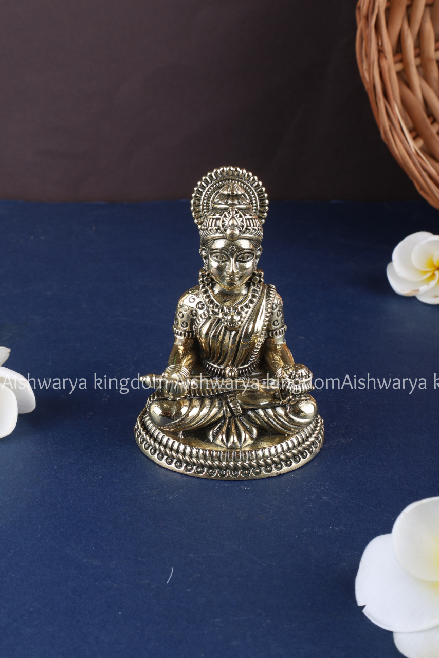Enhance your spiritual and home decor with this exquisite Brass Annapoorani Sitting Silver Finish Statue from AK Crafts. Depicting Goddess Annapoorani, the goddess of nourishment and abundance, seated gracefully with intricate detailing, this statue symbolizes wealth, food, and prosperity.