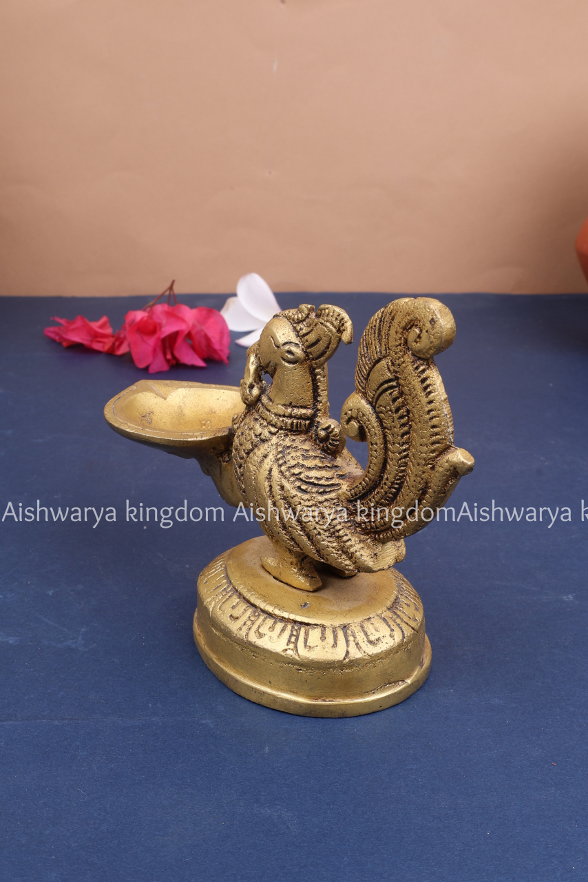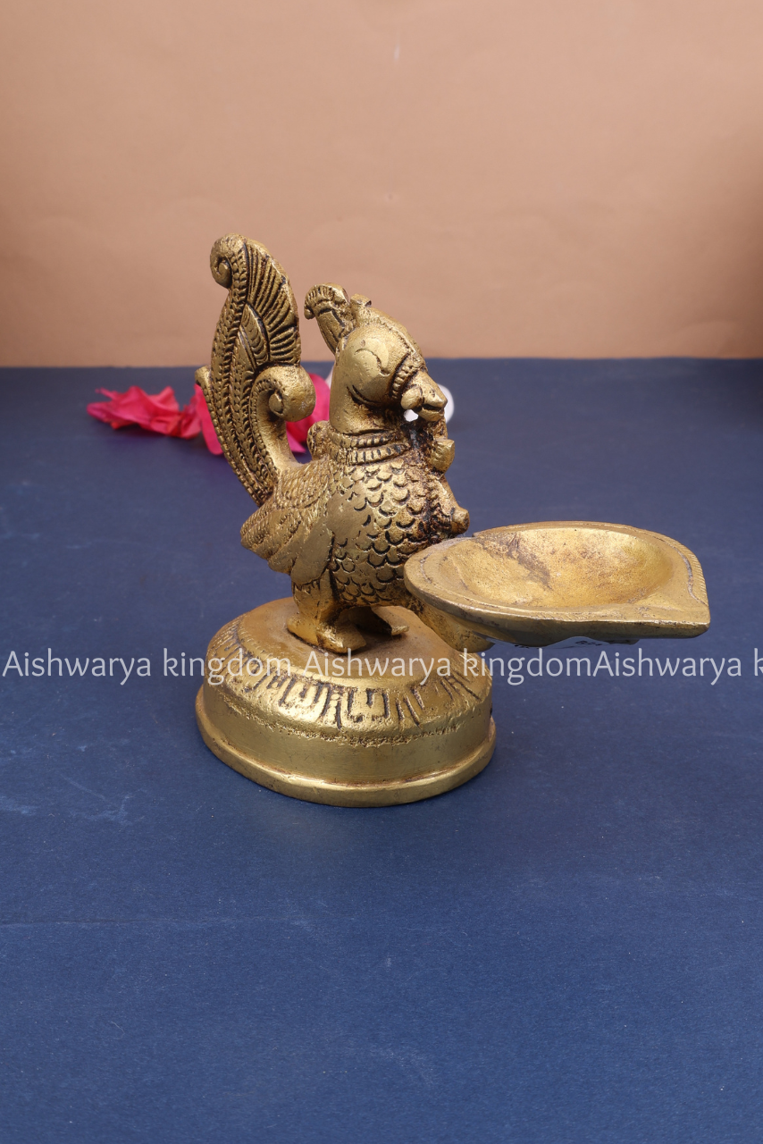 Ideal for placement in pooja rooms, entrances, living spaces, or as a centerpiece during festive celebrations, this Annapakshi Vilakku not only serves a spiritual purpose but also enhances the decor of any space.