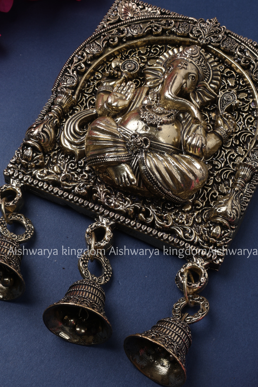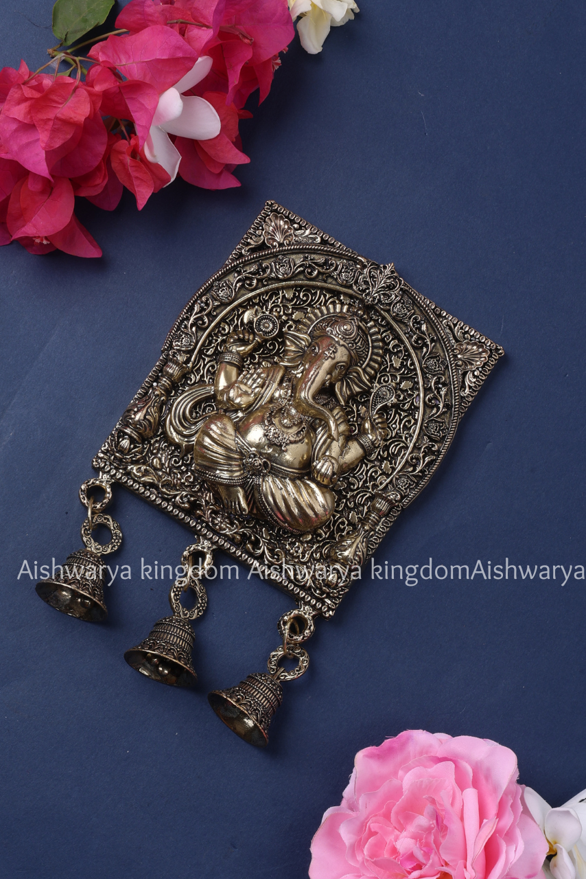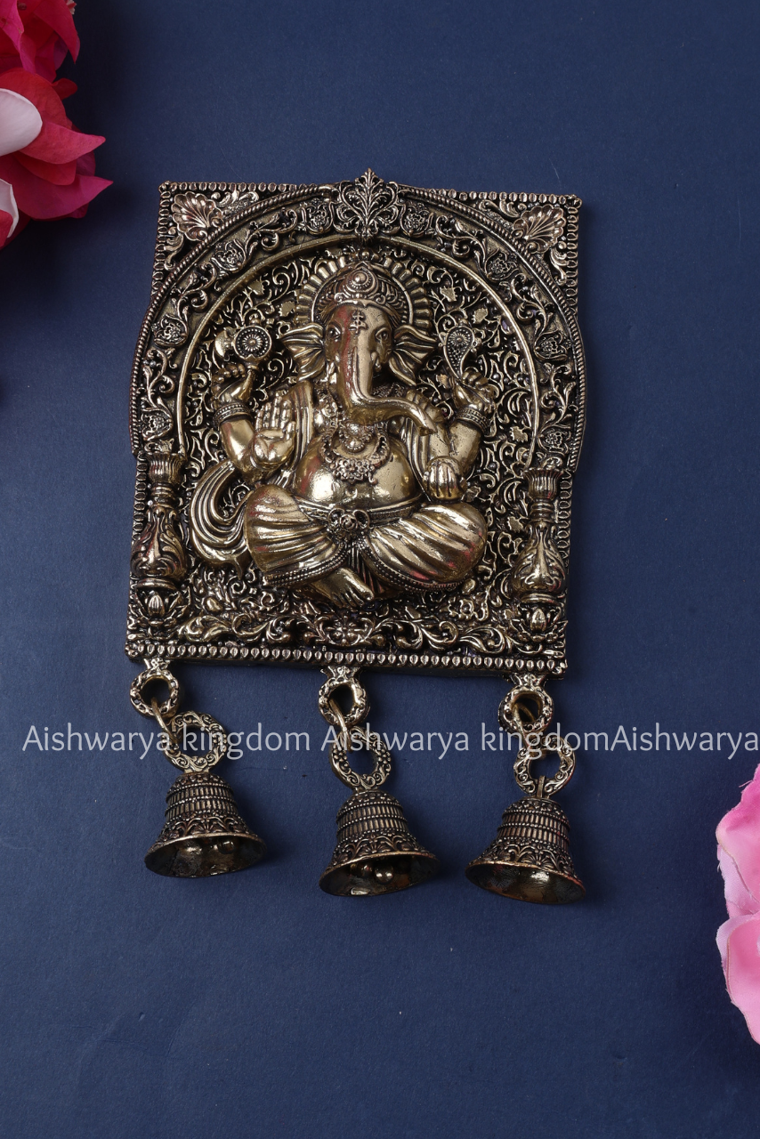 - Brass Ganesha wall hanging with three bells