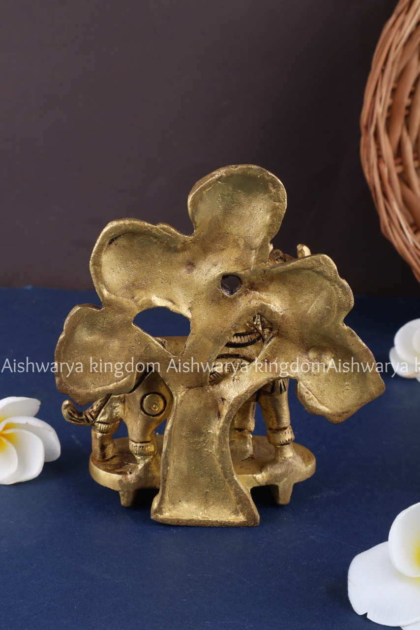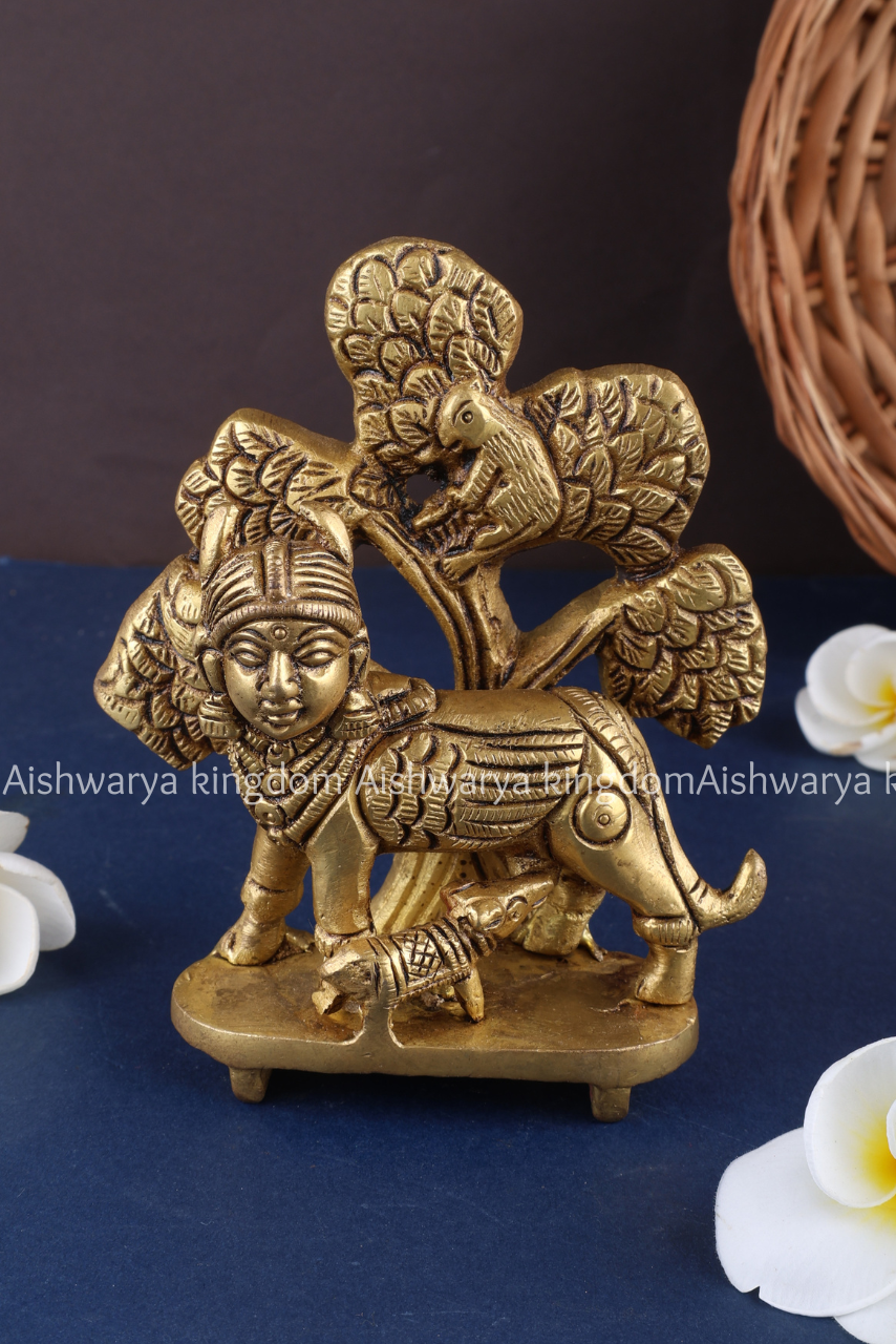 Bring home the symbol of abundance and prosperity with this exquisite Brass Kalpavriksha Kamadhenu Cow & Calf Statue from AK Crafts. Expertly handcrafted, this decorative piece showcases Kamadhenu, the divine wish-fulfilling cow from Hindu mythology, accompanied by her calf, symbolizing nourishment, wealth, and spiritual well-being.