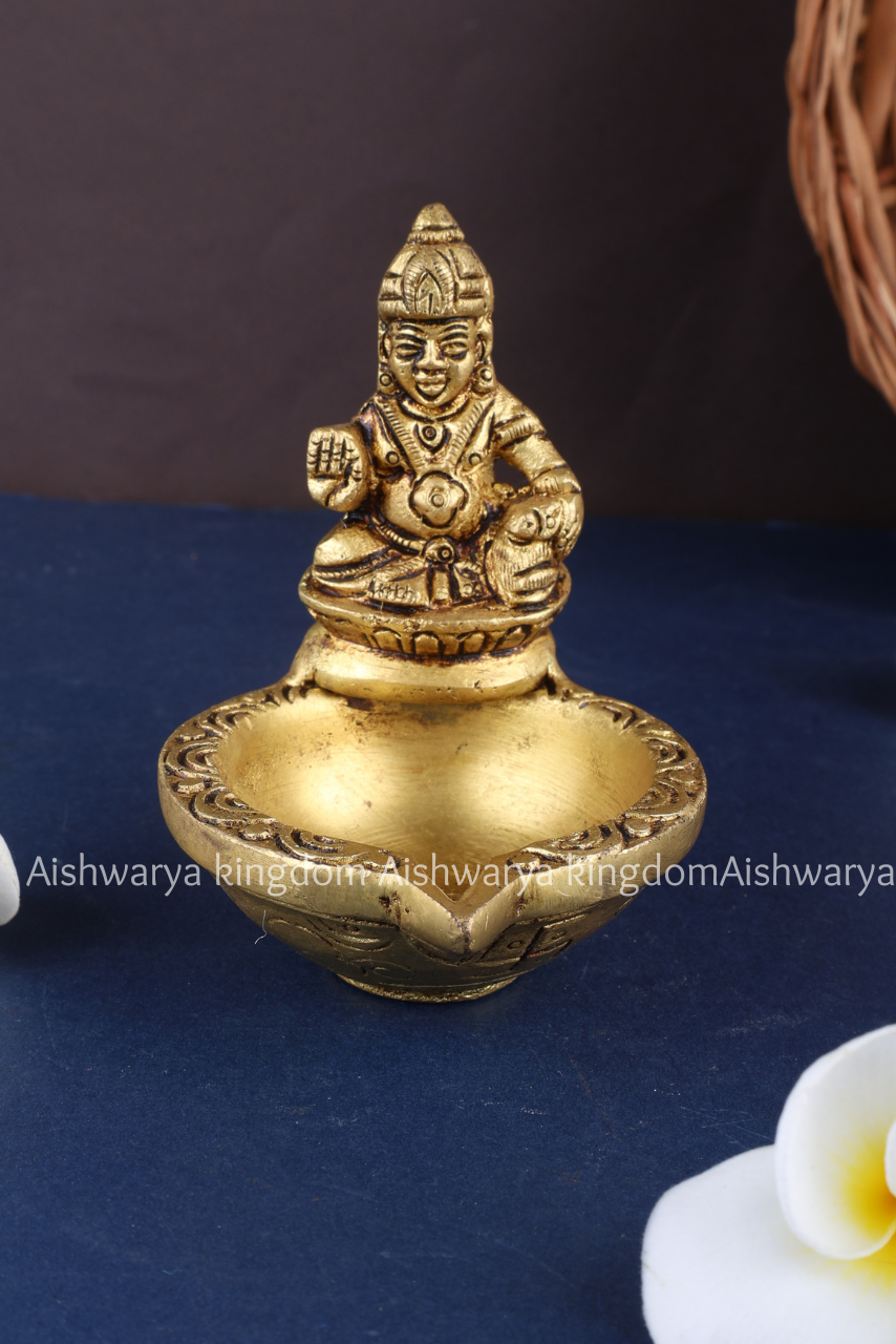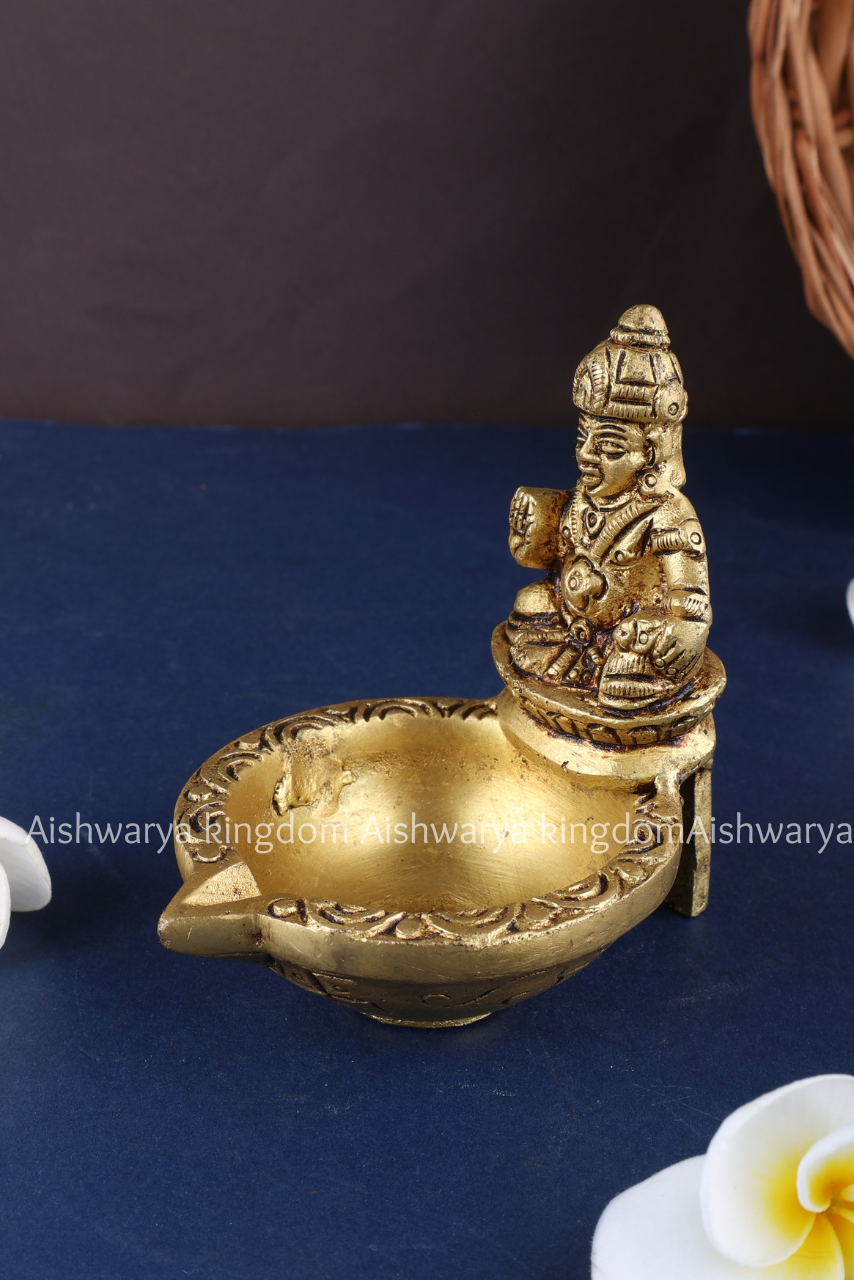 Bring home divine blessings and elegance with this brass Kuber Murthi Vilaku from AK Crafts.