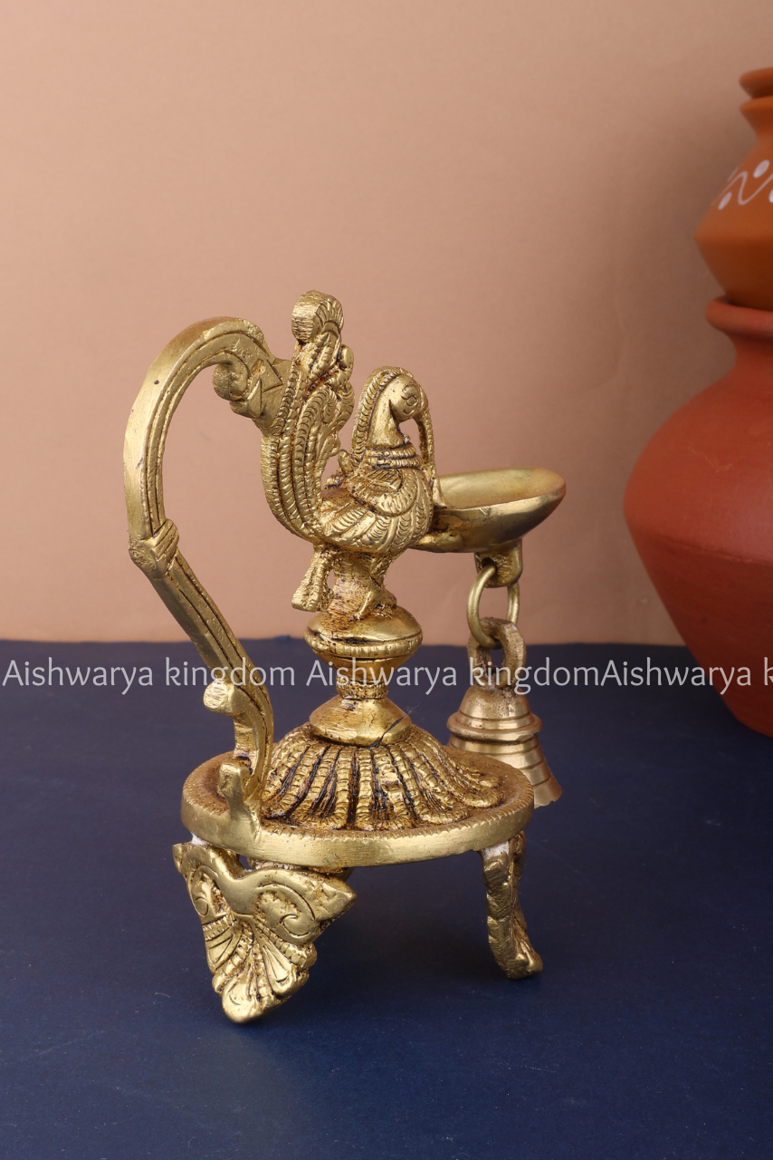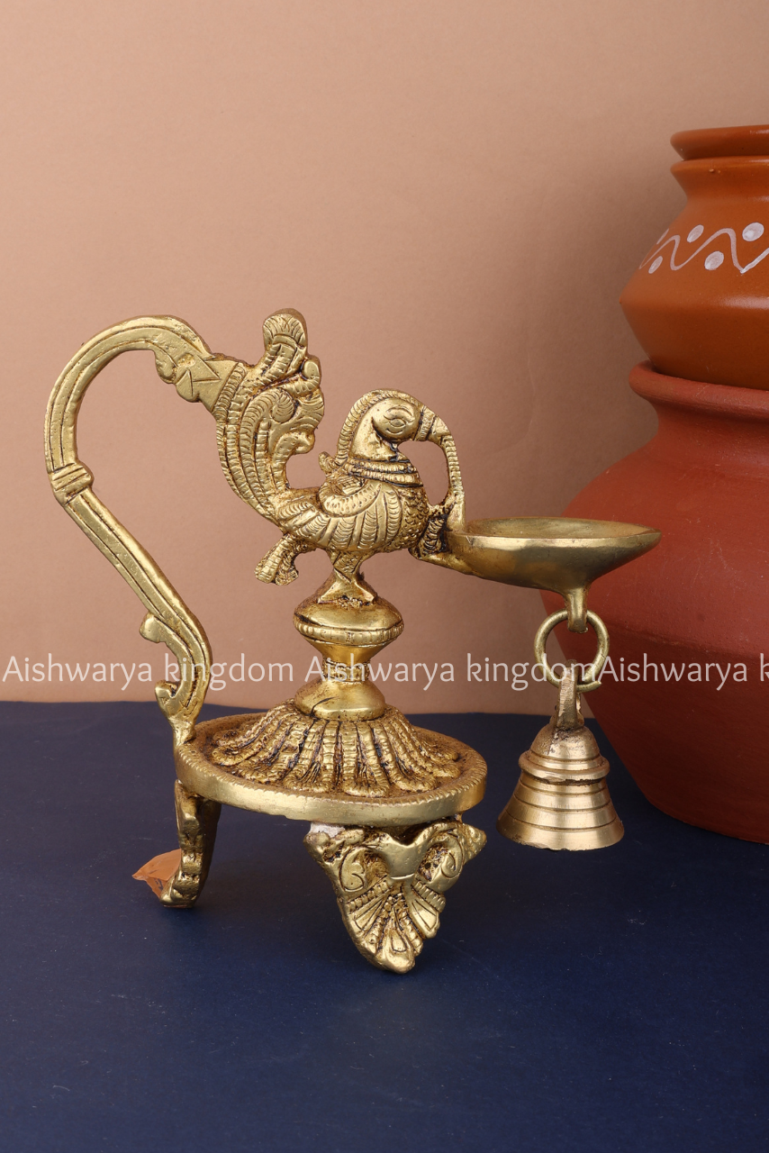 Brass Peacock Handheld Diya Vilakku with Bell by AK Crafts – Pooja Room Decor