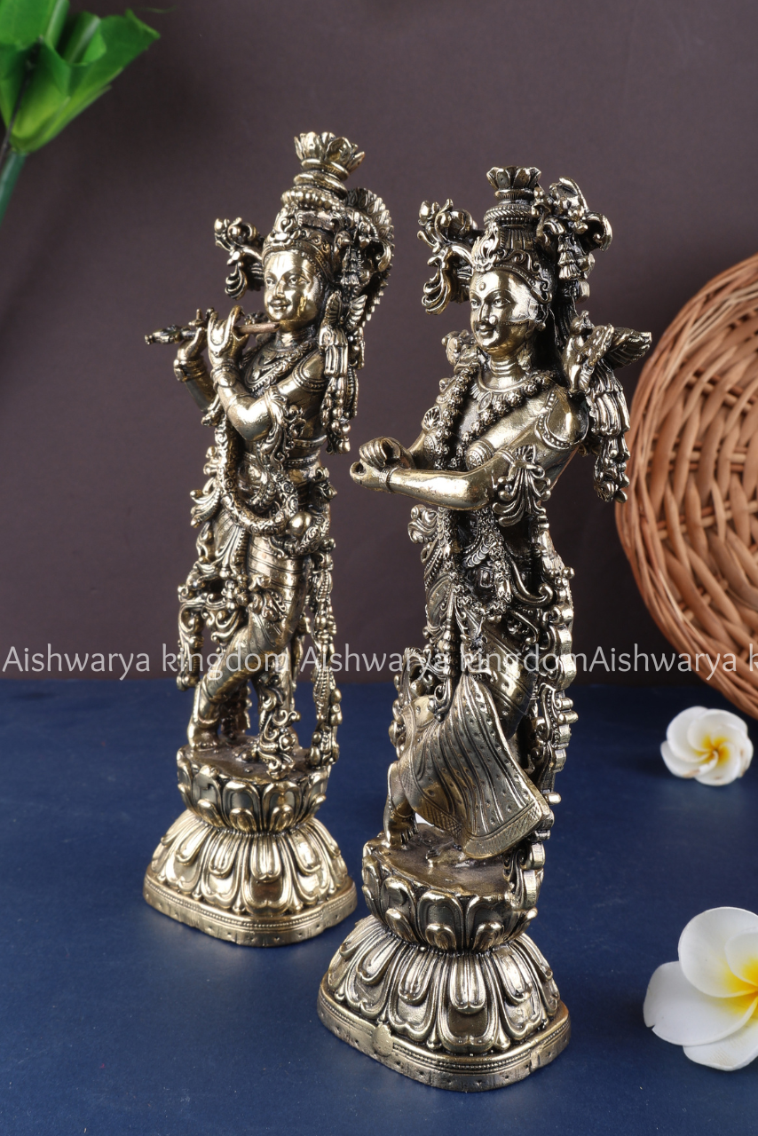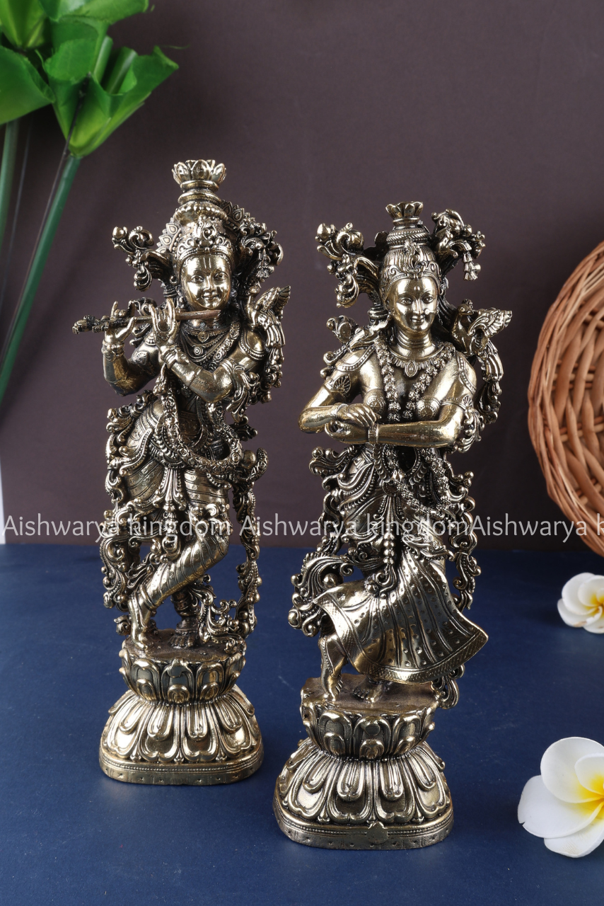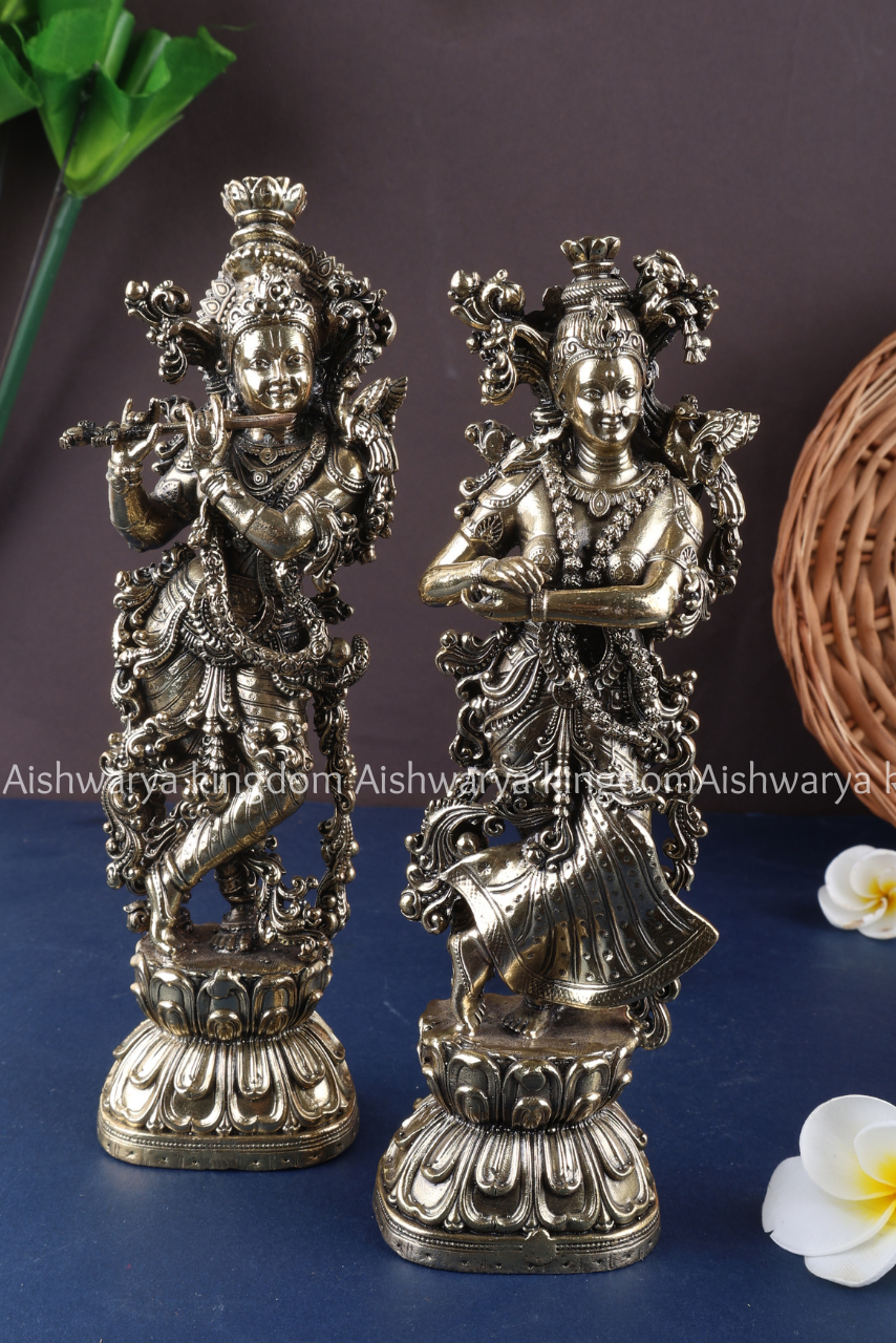 • Detailed craftsmanship of Radha and Krishna in loving posture