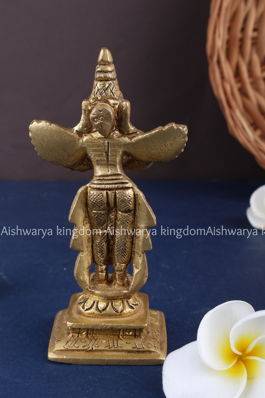 Invite divine protection and spiritual strength into your space with the Brass Standing Garuda Namaskar Statue from AK Crafts. Depicting Garuda in a respectful Namaskar posture, this statue represents deep devotion, loyalty, and the power to ward off negative energies.