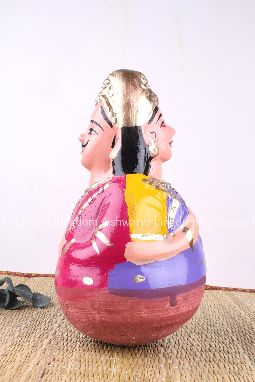 Bring home the divine presence of Tirumala with this exquisite Kondapalli toy set featuring Lord Venkateswara Swamy and Goddess Alimelu Padmavathi. Handcrafted by skilled artisans of Kondapalli, Andhra Pradesh, this set is a timeless expression of Indian heritage and spirituality.