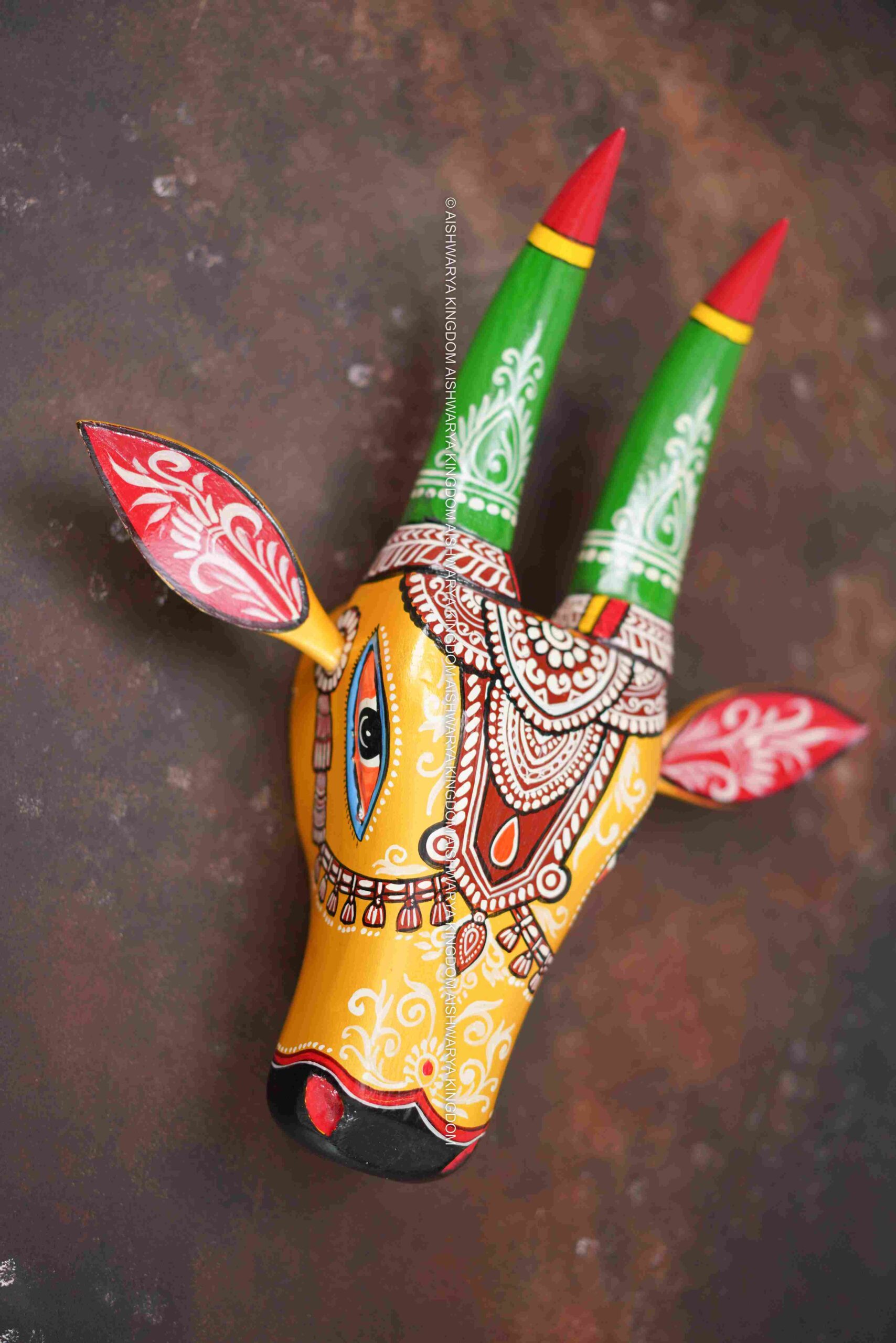 • Artwork: Each adjustable cow head is meticulously hand-painted, showcasing elaborate patterns and motifs that reflect cultural significance and regional artistry.