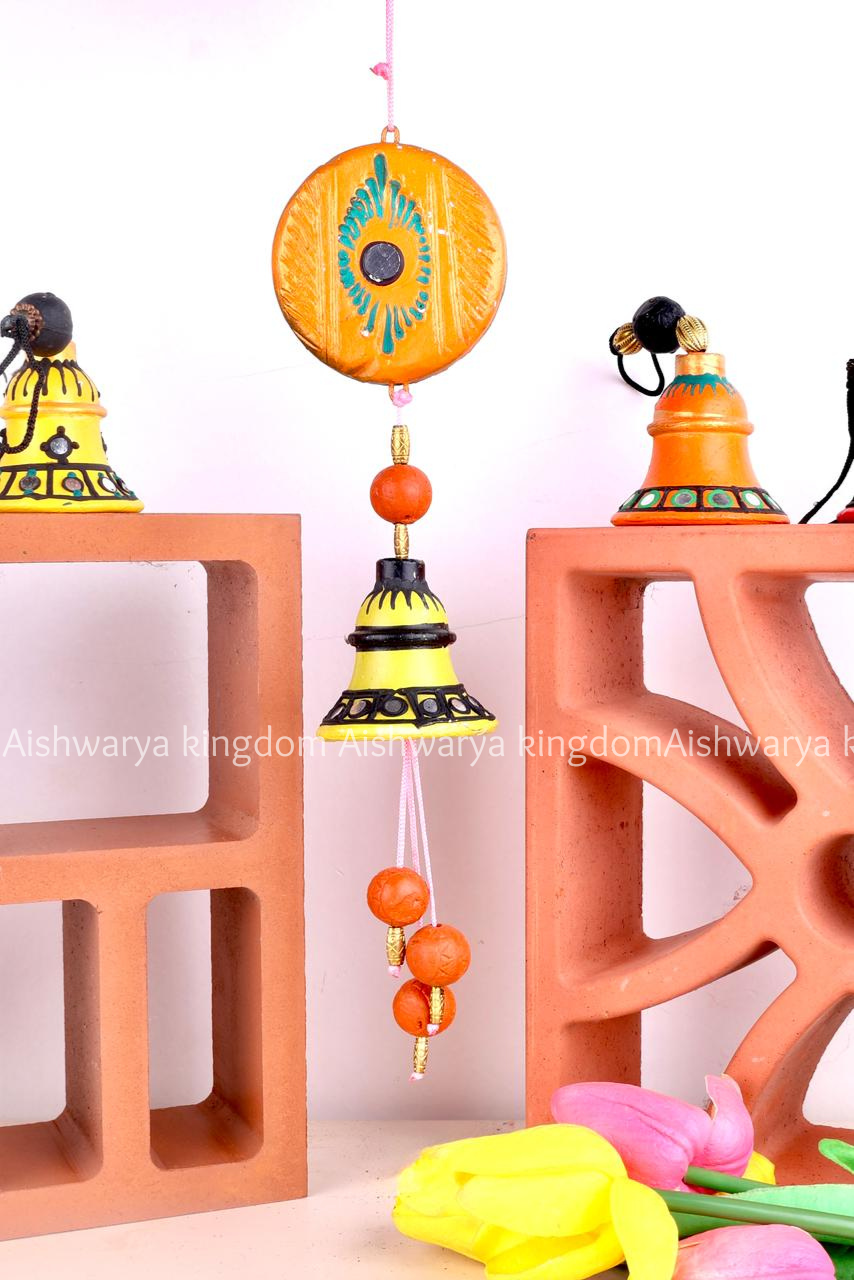 Add a touch of traditional charm to your space with this beautifully handcrafted 10-inch decorative keychain hanging. Designed with vibrant colors and intricate detailing, this unique piece features an artistic circular centerpiece paired with elegant bell accents and bead work, creating a perfect blend of ethnic and contemporary style.