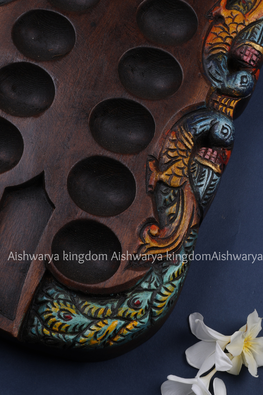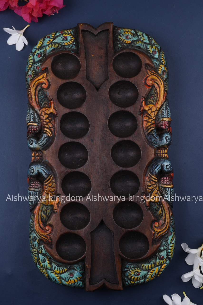 Rediscover the charm of traditional indoor games with the Handicraft Wooden Pallanguli Board with Peacock Motif from AK Crafts. Rooted in South Indian heritage, Pallanguli (also known as Mancala) is a timeless game that promotes strategic thinking, patience, and bonding across generations.