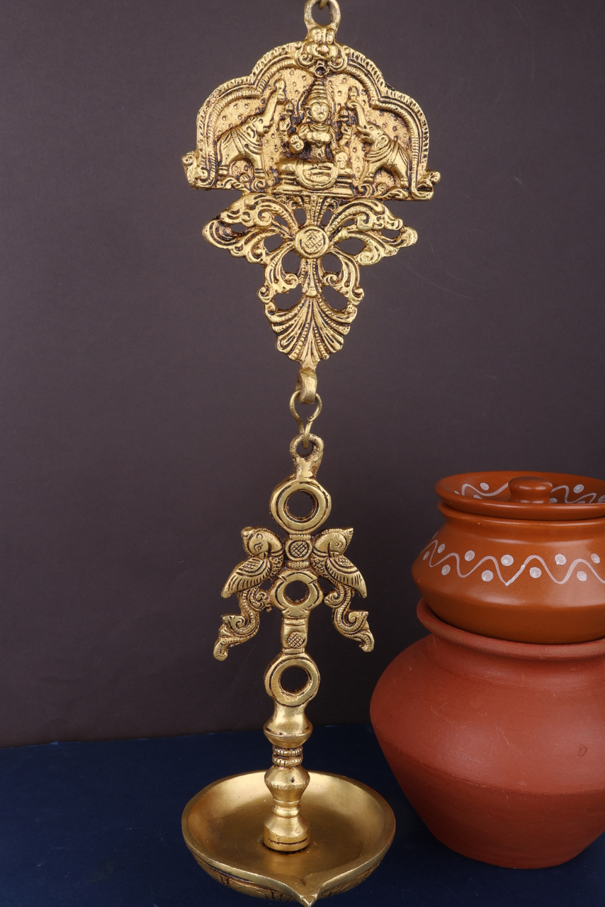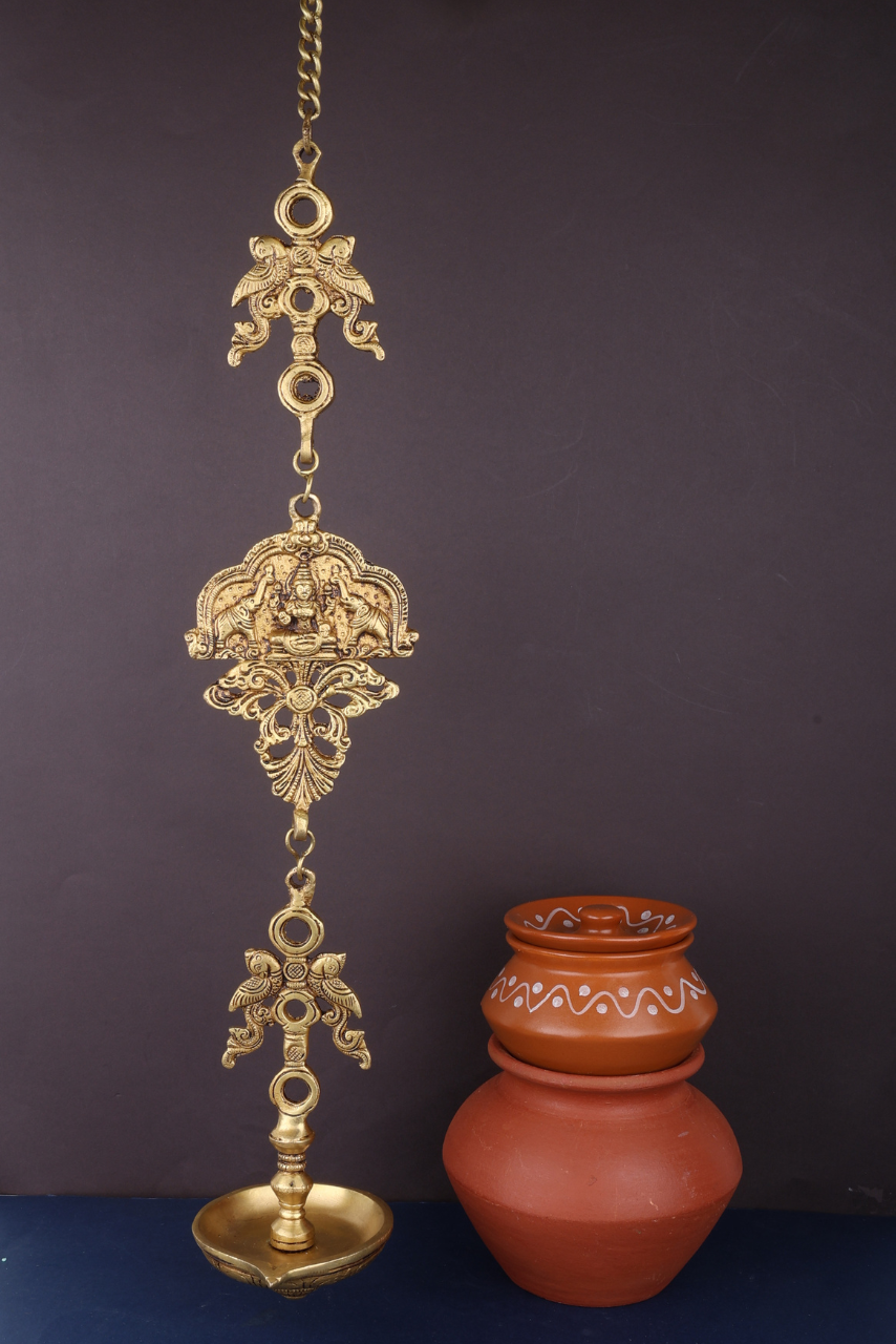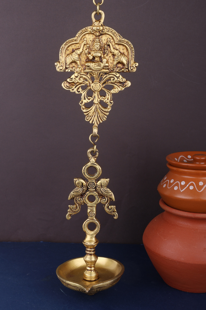 Add a touch of tradition, light, and divine blessings to your home with this Gajalakshmi hanging diya from AK Crafts.