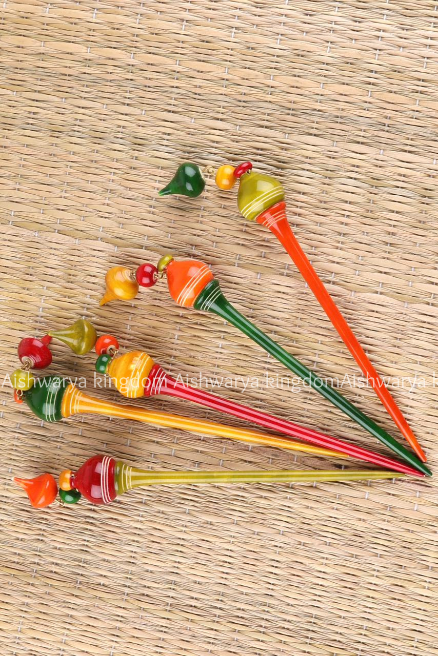 Kondapalli Wooden Hair Stick – Multi Colour Handmade Hair Pin