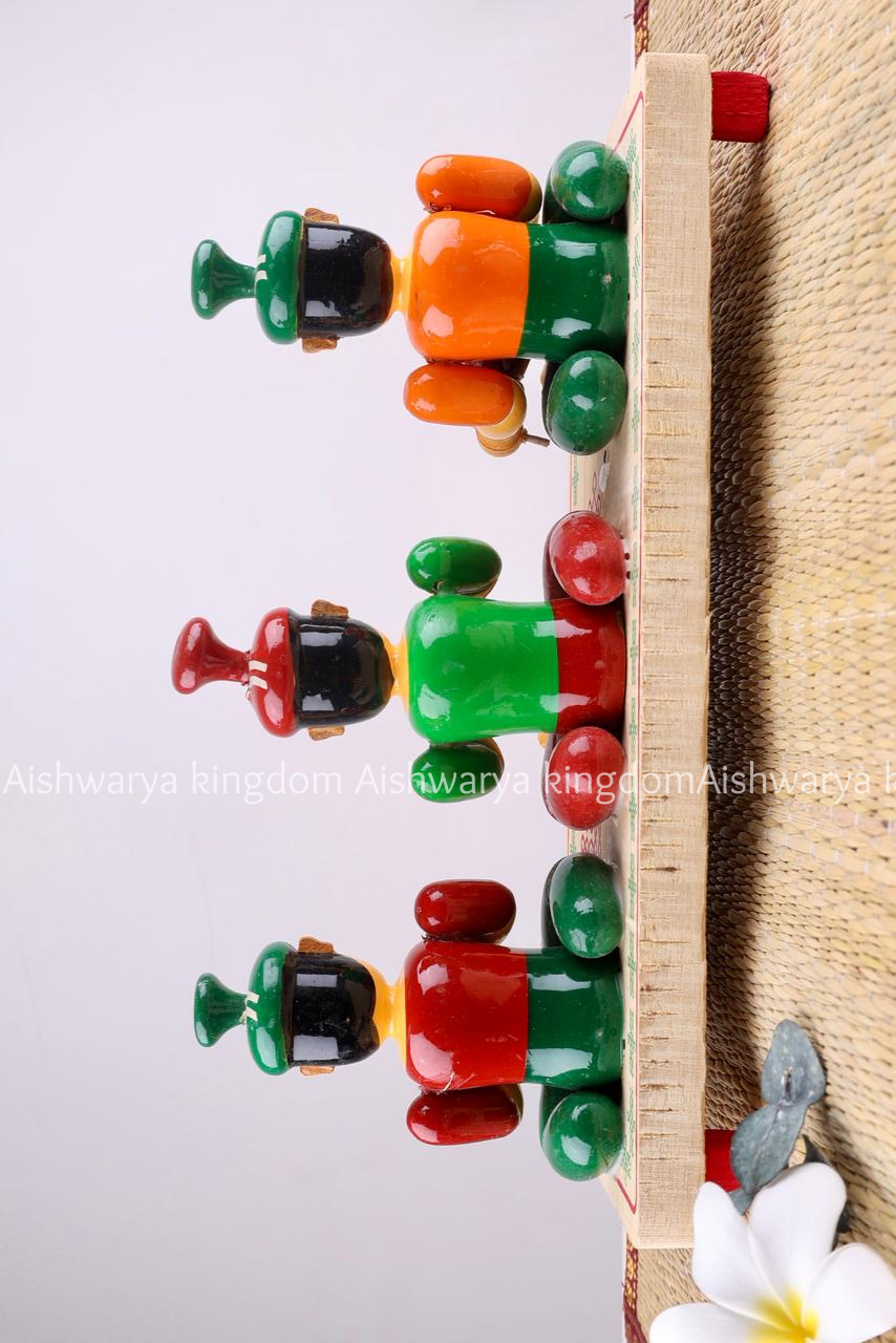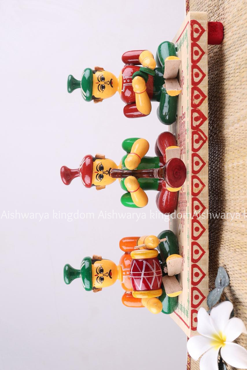 • Complete Ensemble: Set of 3 musician figurines – typically featuring Sannai Player (Principal Melam artist), Thavil Drummer, and Talam (Cymbal) Player.