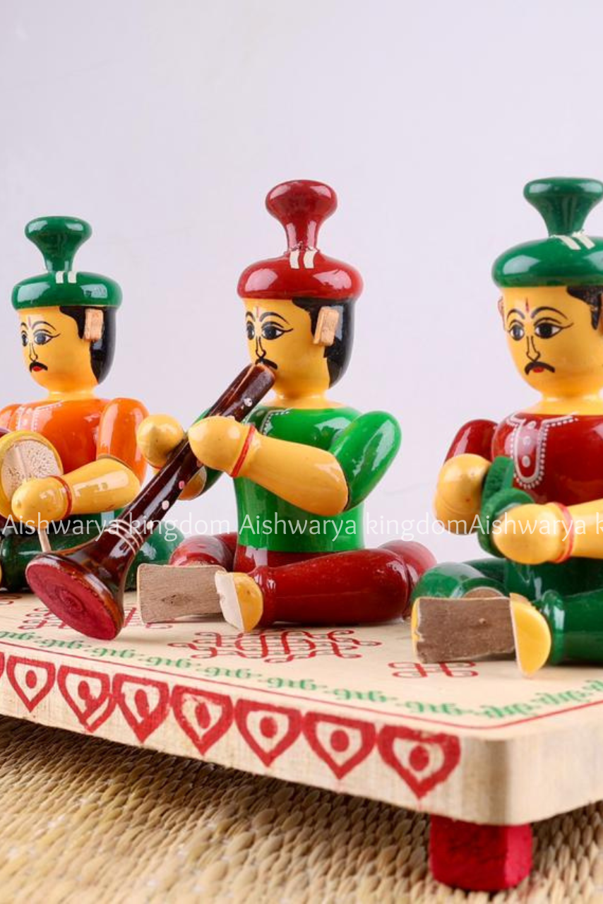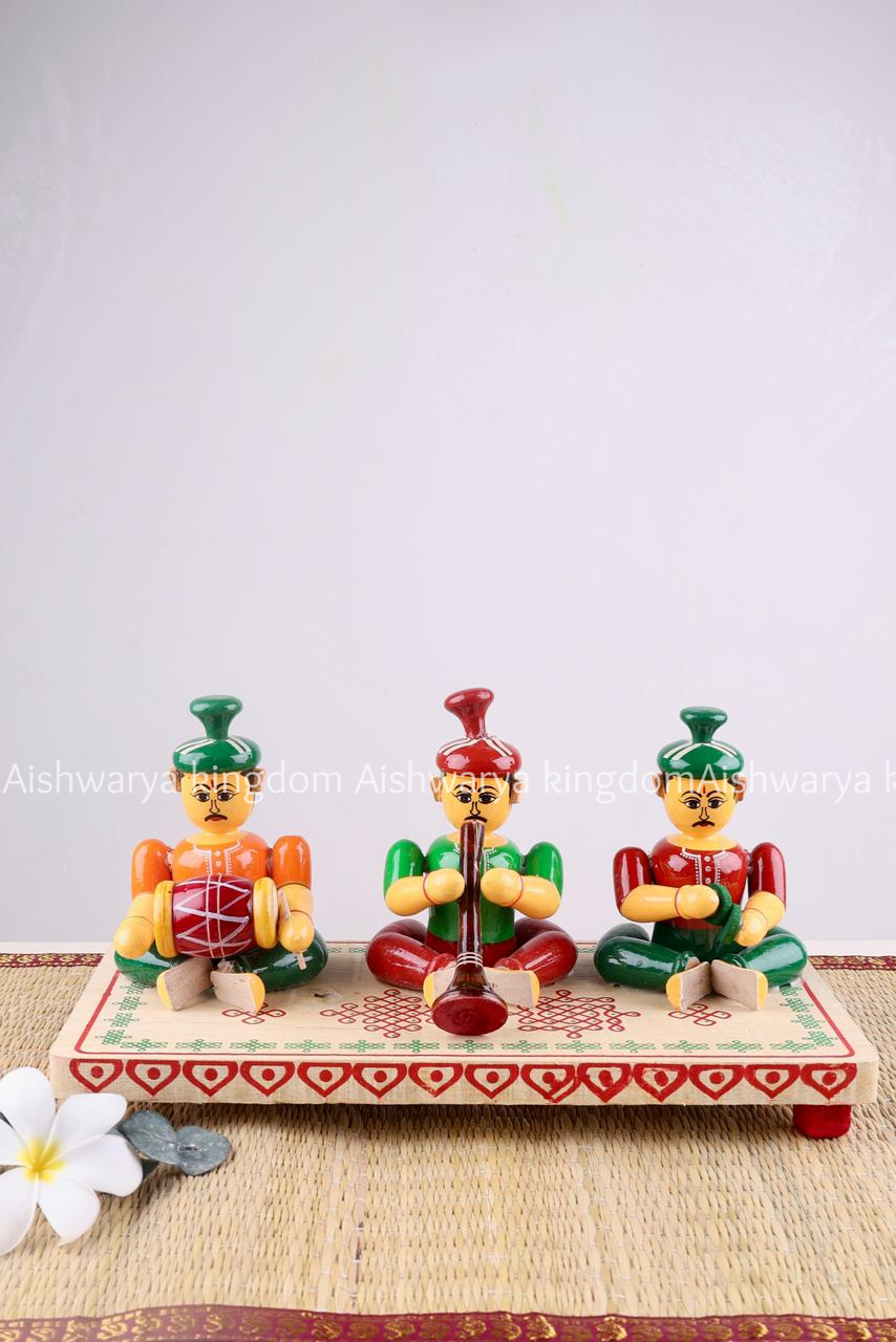Kondapalli Wooden Sannai Set – Traditional Melam 3 Figurines | Handmade Musical Dolls
