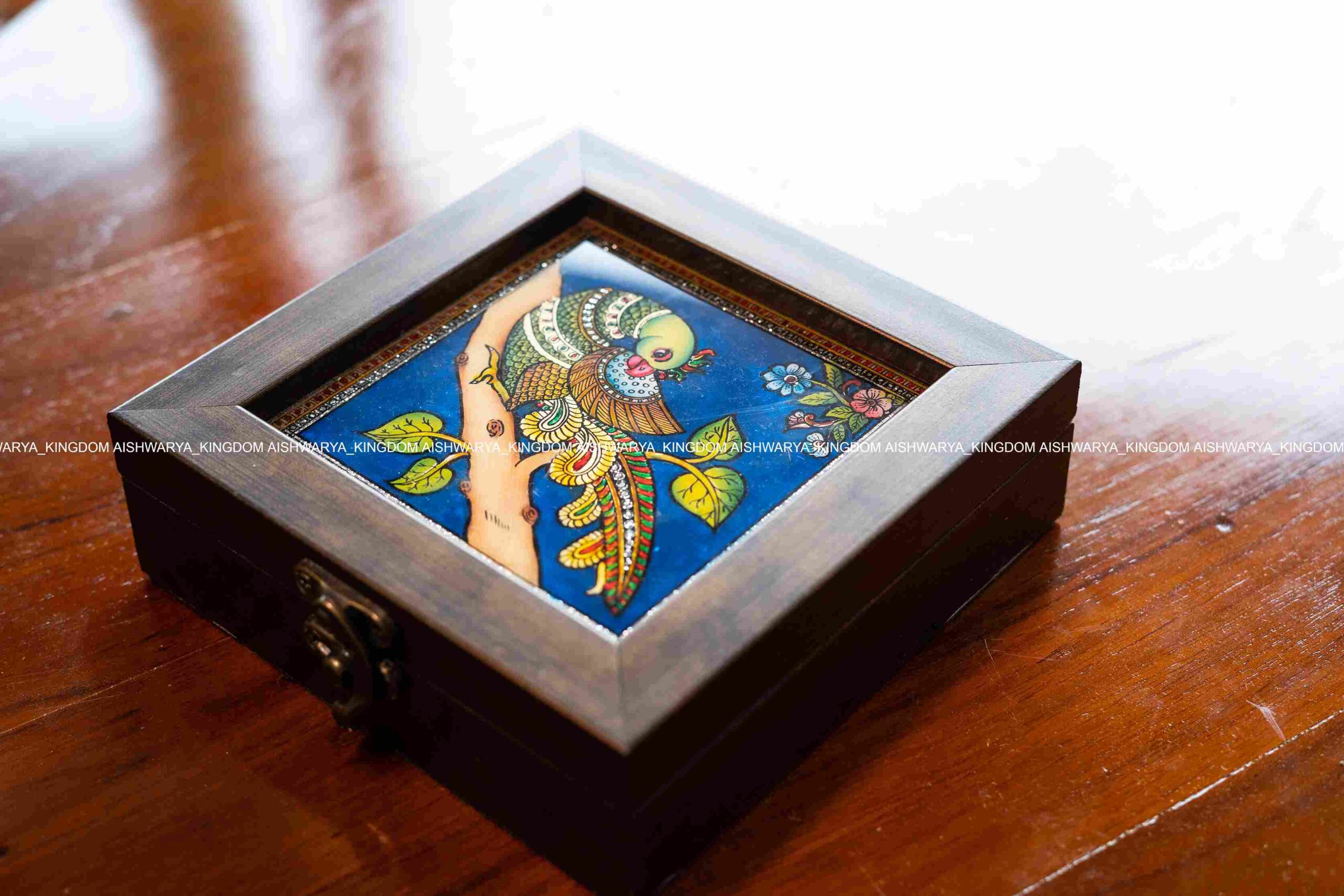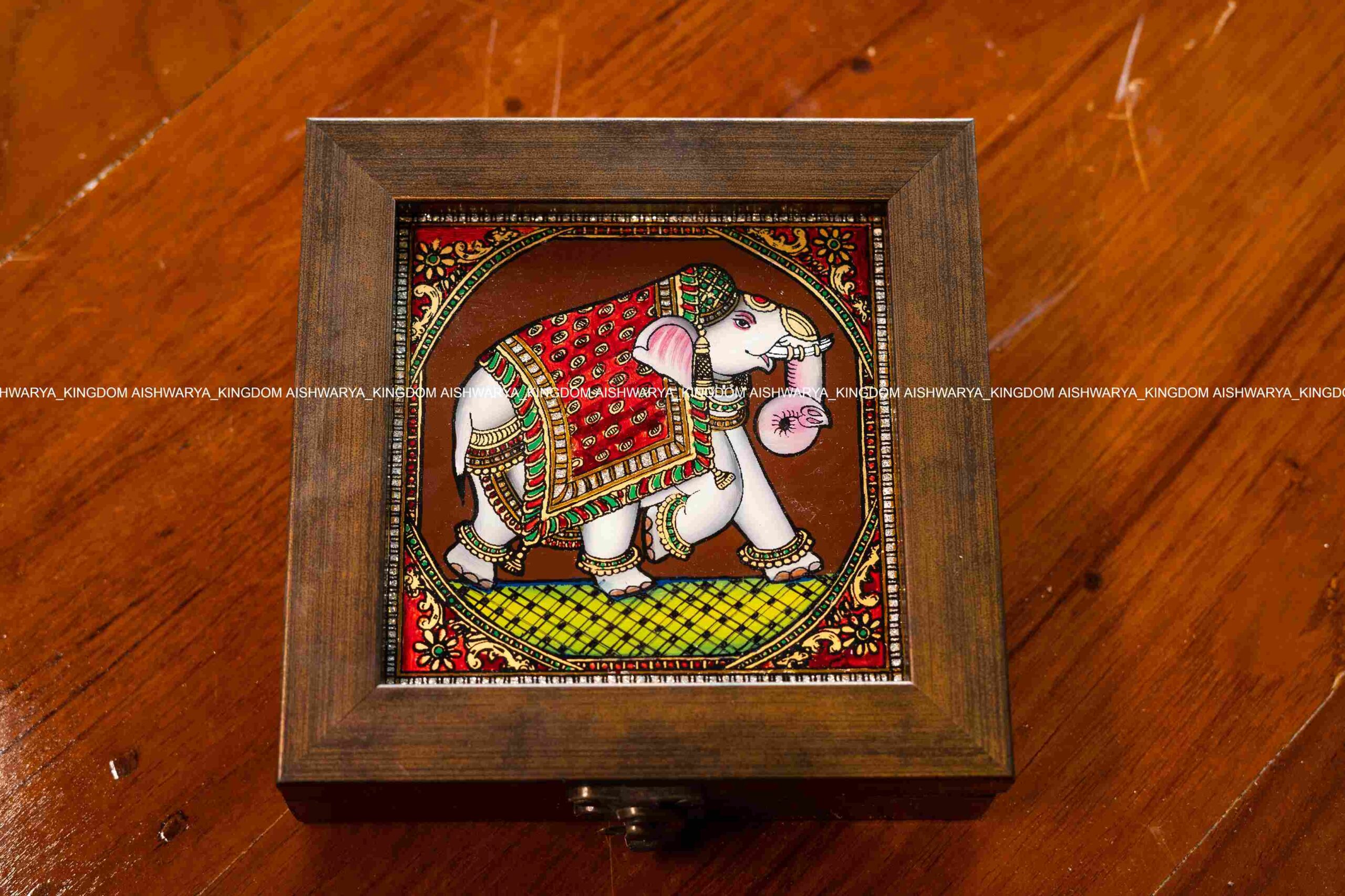 A Tanjore glass painting jewel box is a beautiful and artistic item, combining the elegance of Tanjore art with practical storage. Here are some key features: