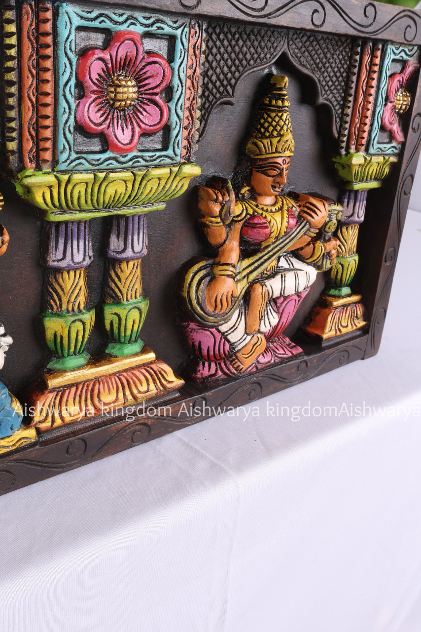 Wooden Handcrafted Double Pillar 3 God Panel