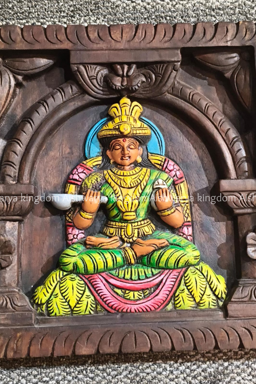 The Annapoorni Panel symbolizes nourishment, abundance, and prosperity, perfect for kitchens or pooja rooms. The Vinayagar Panel (Painted) features Lord Ganesha in a vibrant painted finish, representing wisdom, protection, and auspicious beginnings. The Saraswathi Panel embodies knowledge, learning, and creativity, making it ideal for study or work areas. The Lakshmi Panel signifies wealth, fortune, and positivity, bringing charm and grace to any living space.