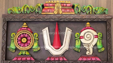 Enhance your home with spiritual elegance through the Wooden Handcrafted V Namam with Temple Beeding Painted Panel by AK Crafts. This beautifully crafted panel features the sacred V Namam symbol, representing devotion, purity, and divine blessings.
