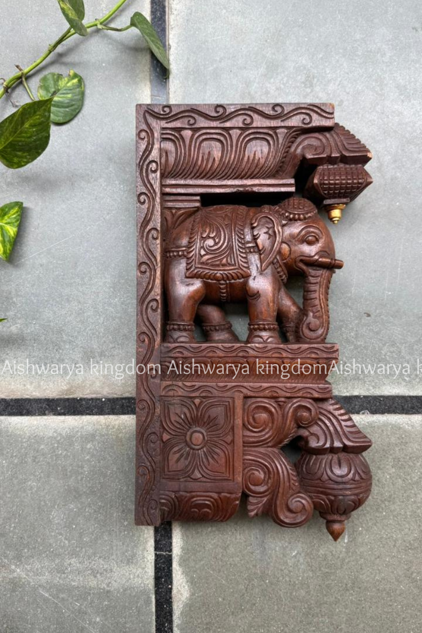 • Handcrafted wooden decor featuring full elephant with Bodhil design