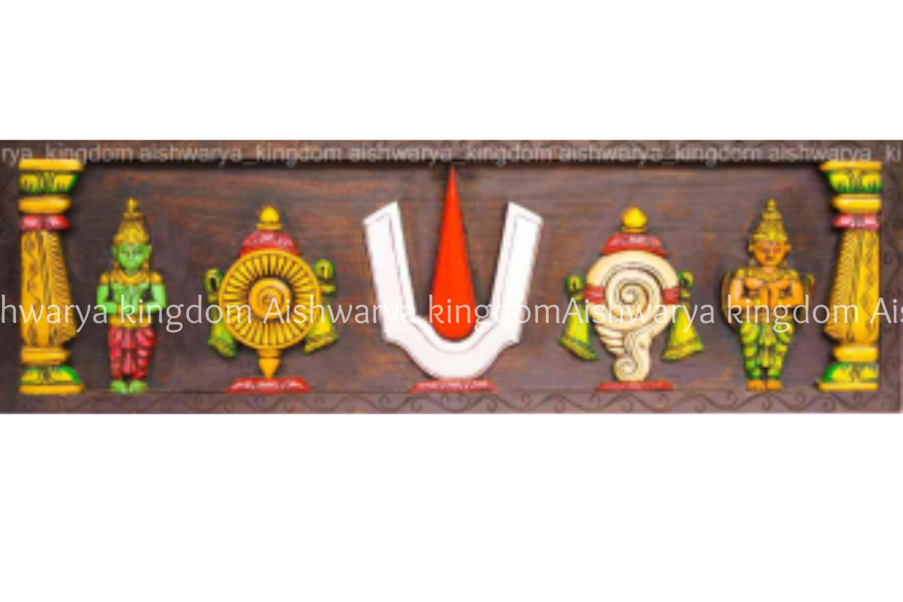 Wooden Handicrafts V Namam Anjaneyar & Garudar with Beeding Painted from AK Crafts is a meticulously crafted devotional piece. The panel features Lord Anjaneyar and Garudar flanking the sacred V Namam symbol, representing strength, protection, and divine blessings.